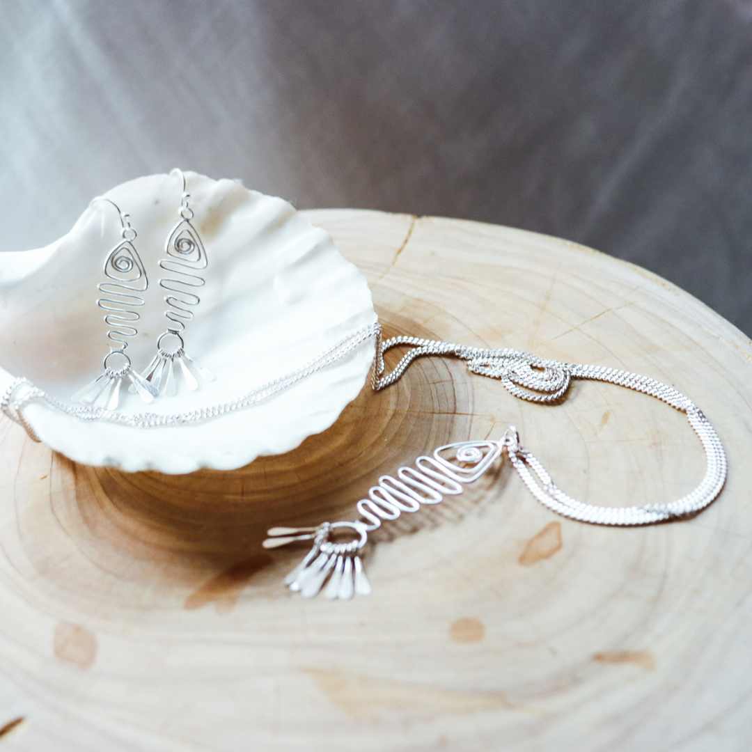 The very unique silver fish is crafted from a thick sterling silver and made to the shape of the fish. The fish sits on a sterling silver fine curb chain, with a chain length of 85cm. The necklace comes with a 5cm extender, and sits at a longer length on or below the bust. .....pair with the Bijoux Sterling silver Fish Earrings....perfect!