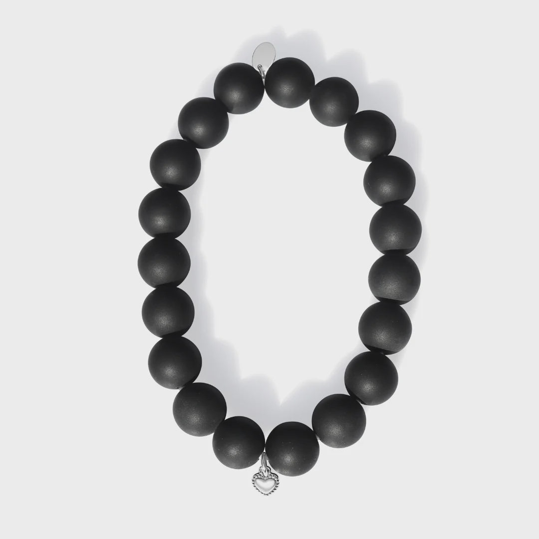 This versatile Black Onyx Stretchy Bracelet features beautiful and bold black onyx stones, accented by a petite sterling silver heart. The easy to wear stretch design is perfect for layering and makes it suitable for women of all ages. A modern take on the classic stretchy bracelet, this piece is perfect for gifting with its on trend and year round wear.