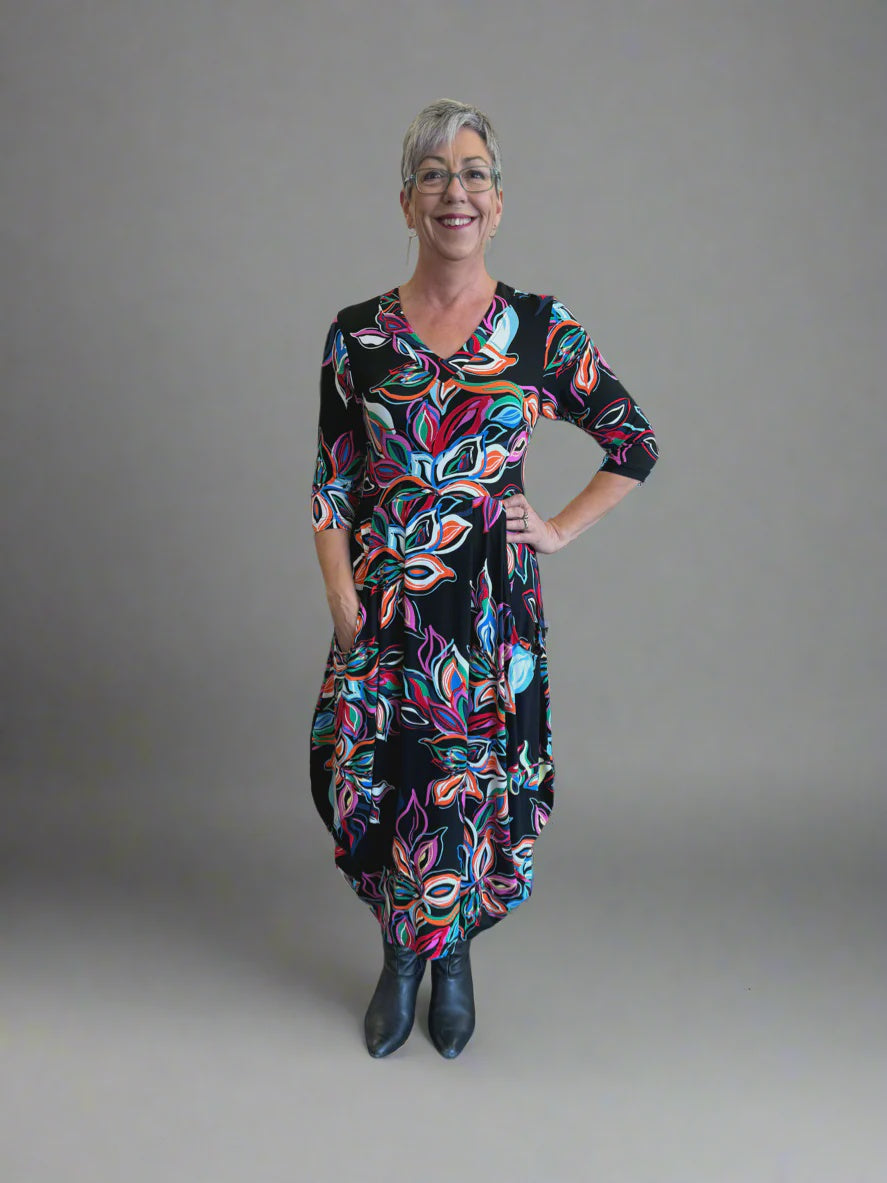 LAST ONE - SIZE 18...Bittermoon’s best-selling Carly Dress returns!..Proudly made in New Zealand, the Carly Dress looks great on everyone who try this style on with its fitted bodice and soft cocoon shaping. If you have your eye on this style, don't delay, our Carly Dresses always sell fast!