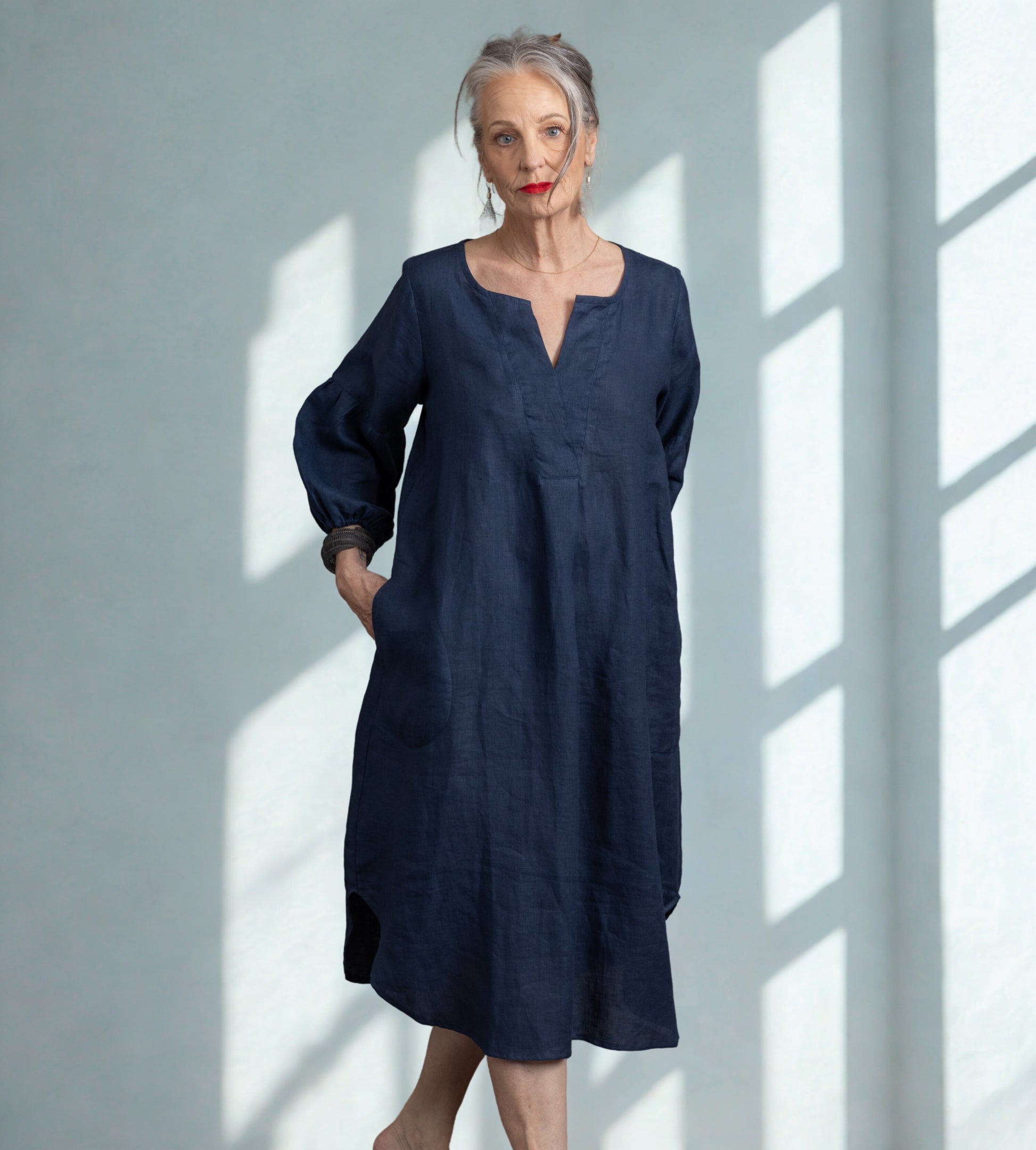 Our Flaxbloom Claudette dress has quickly become a favourite and is requested time and time again.It features a flattering elbow-length blouson sleeve, a comfortable, relaxed fit with a V-neck detail, pockets, and a perfect back design.