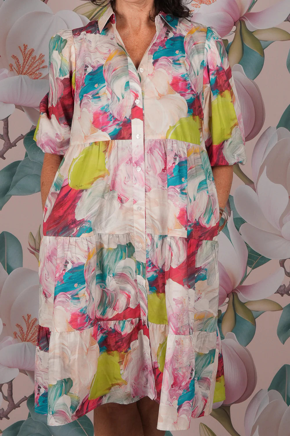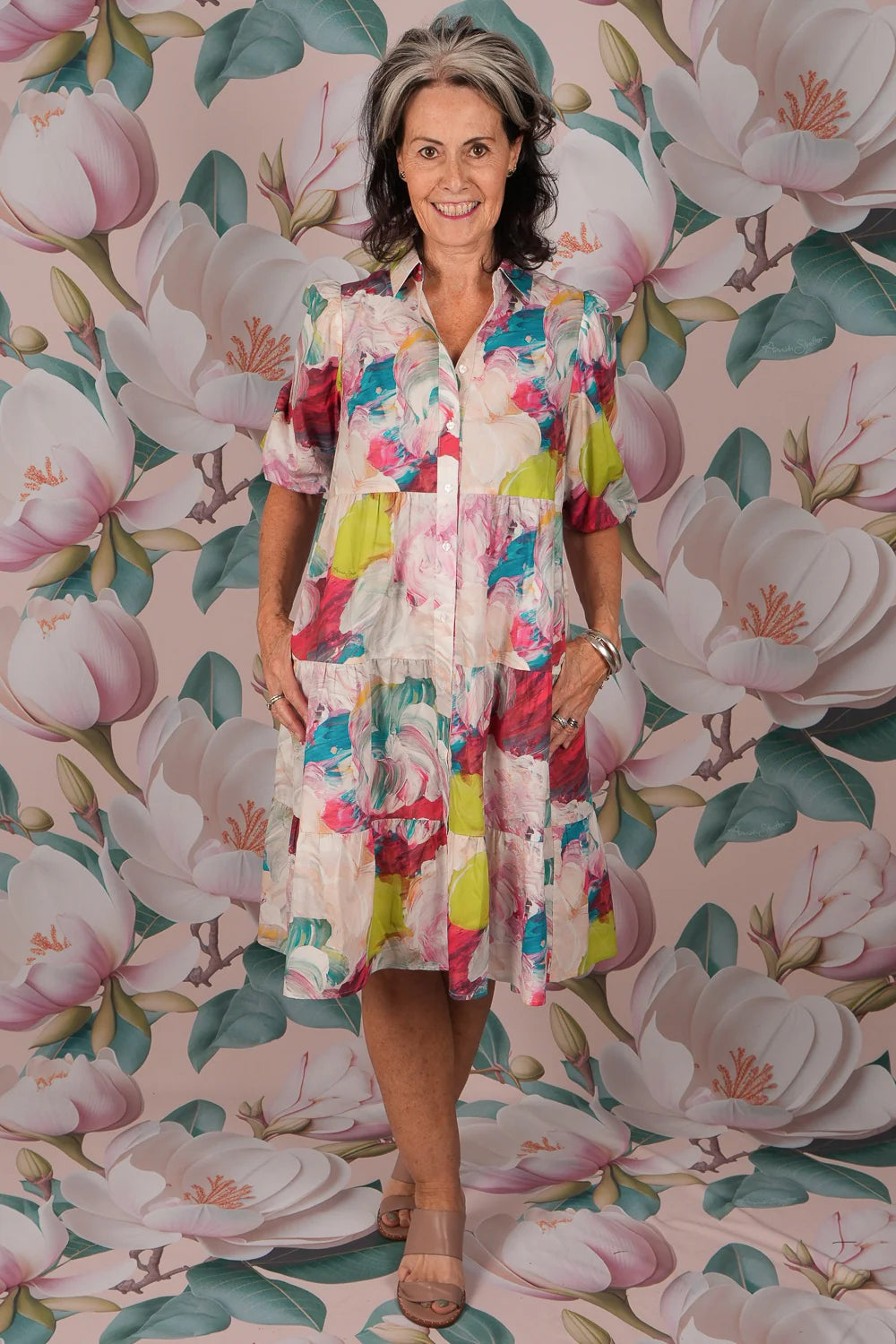 Our super cute take on a white shirt dress - button up style with a shirt collar and puff sleeves. Tiered skirt falling to around the knee in a super soft linen/cotton blend, the Mad Hatty dress is a perfect everyday dress through the warmer months!