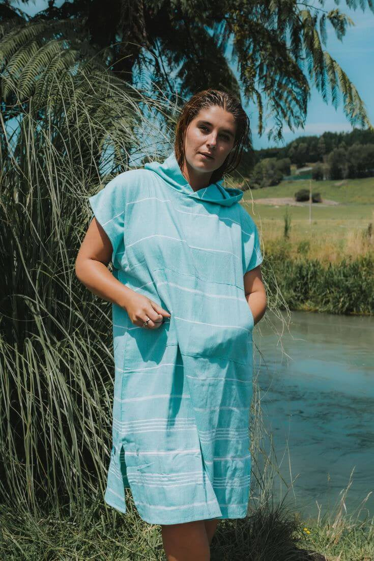 Medium is roomy for me (and is the size I designed for myself to change under), comes to mid calf, fits a size 12-22 and has plenty of room to get changed inside, it’s our one-size-fits-most.